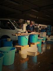 昼過ぎだったのでもう市場は閑散としていましたがなぜか1人だけ魚をさばくおじちゃんが(笑)