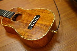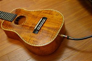 ウクレレにMONSTER CABLE JAZZをつなぐとこんな感じ