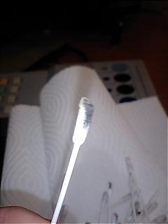 強力な研磨材なので綿棒の先に少しだけつけて、磨いてみた。