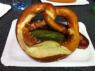 せっかくドイツの地に降り立ったので、フランクフルトとプレッツェルを食べました。