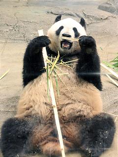 肝心のパンダはというと、、混雑の中ゆっくり撮れなかったのとガラスケースに近づけないのでガラスの写り込みがあってどうしても綺麗に撮影できませんでした。
