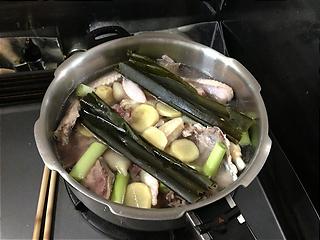 鶏ガラでスープを作ってそれで鶏鍋をしました。