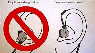 ネットでこんな画像と共に、これが正しいイヤホンの付け方だ。