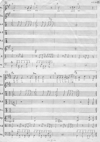 その曲は当時、組んでいたコピーバンドでやったのですが、みんなに練習してもらう用に、バンドスコアを書きました。