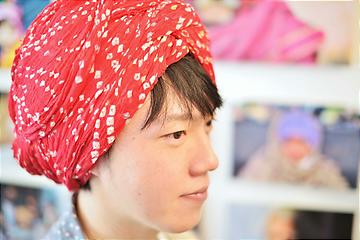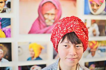 こないだ後輩のフォトグラファー、桑原雷太君の個展を見に行ったのですが、その時ターバンを巻いて写真撮影をしてもらいました。