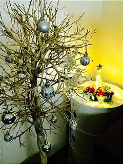うちにはツリーはないので、すっかり枯れてしまい葉がすべて落ちてしまったベンジャミンにいろいろオーナメントをつけてクリスマスツリー代わりに。。