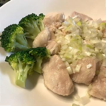 ただ片栗粉をまぶして茹でただけの鶏肉です(笑)