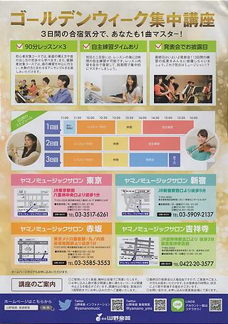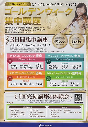 今年もGWはヤマノミュージックサロンにてゴールデンウイーク集中講座を担当させていただきます。