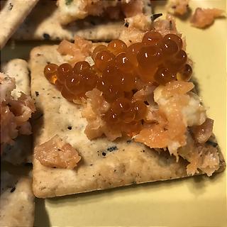 エシレの風味をダイレクトに味わえるようにスモークサーモンとバジルをエシレバターで和えたカナッペにして食べましたよ。