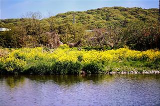 多摩川のせせらぎと菜の花に囲まれてのバーベキューは至福のひととき。