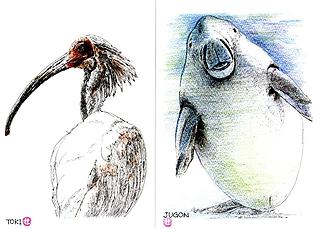 ボールペンと色鉛筆のみで描かれた絵はとても繊細でした。