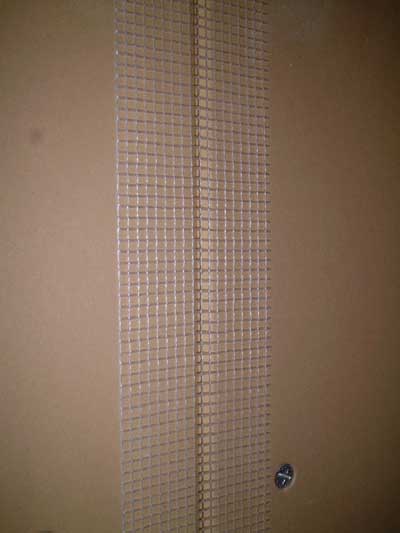 | 石膏ボードの継ぎ目にはグラスファイバーテープと呼ばれる特殊なテープを貼ります。
